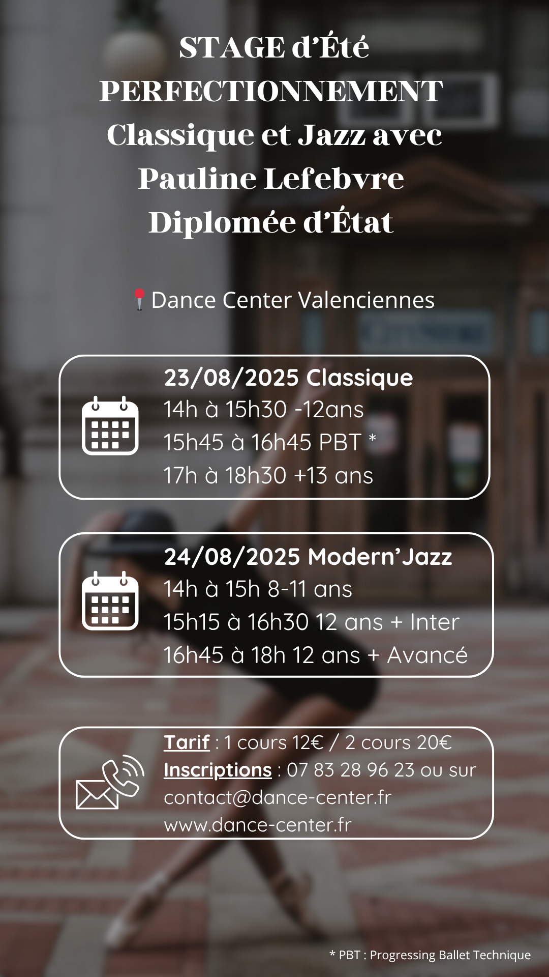 Inscriptions et Infos : contact@dance-center.fr et 07.83.28.96.23